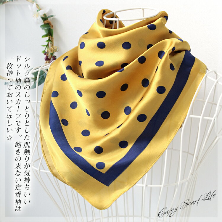 ↓↓色違いは希望のカラーをクリック↓↓ シルク調のしっとりとした肌触りが気持ちいいドット柄のスカーフです。