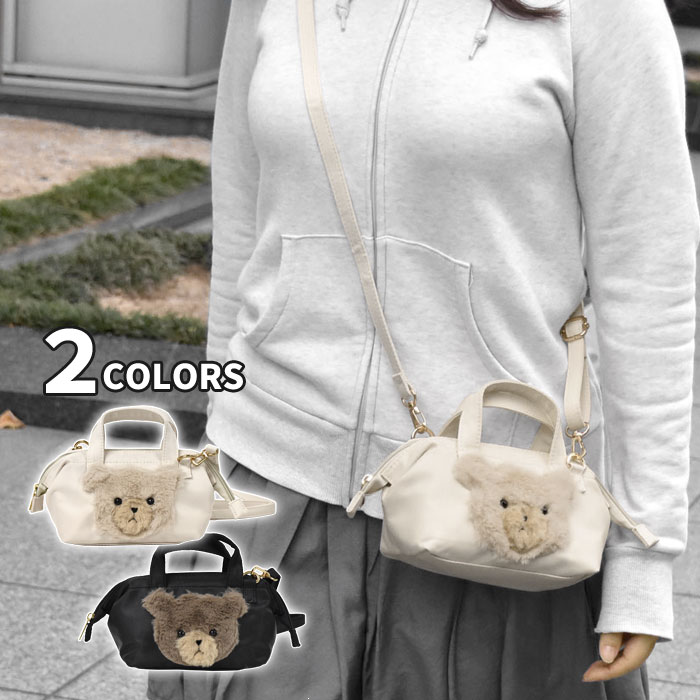ミニショルダーバッグ レディース/FLAPPER フラッパー ポリエステル テディベア アップリケ 2way ミニ ショルダーバッグ がま口 口金 ミニボストンバッグ 斜めがけバッグ ポシェット ミニバッグ 小さめ おしゃれ かわいい 可愛い ポーチ ミニポーチ 小物入れ くま ファー