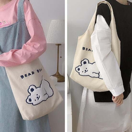 トートバッグ レディース キャンバス ビッグ トートバック 大きめ 大容量 Sちゃんまん トート 帆布 布 a4 サガラ刺繍 ショルダーバッグ 通勤 通勤用 通学 通学用 学生 マザーズバッグ 女性 女子 大学 旅行 手提げ 肩掛け おしゃれ オシャレ 可愛い かわいい クマ くま
