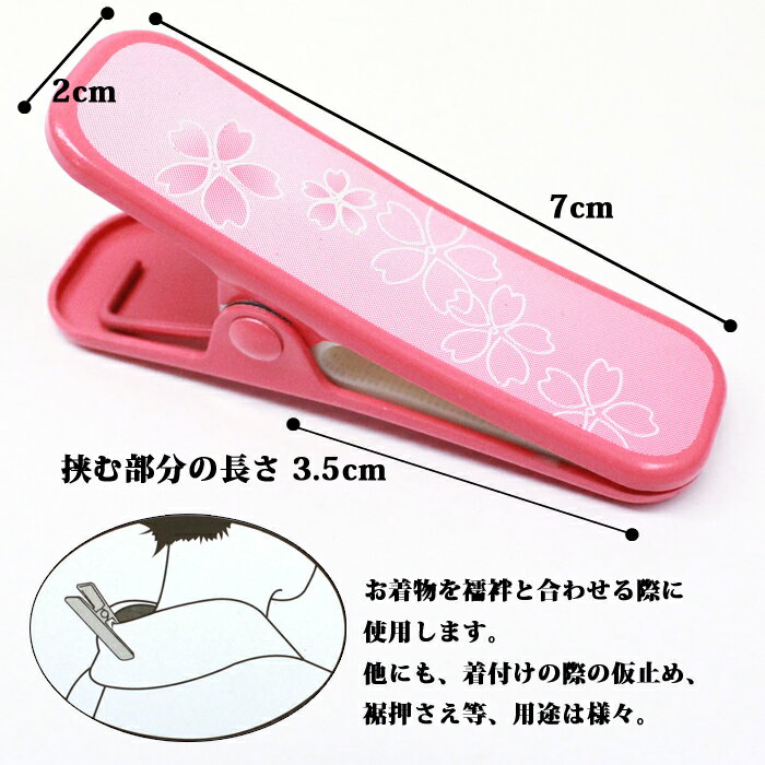 和装小物 きものクリップ 1個 <全3色/小桜柄>《よりどり3点1,000円対象商品》【メール便対応可 宅配便対応可 着物クリップ 着付 和装 着物 きもの 和装品 着付け 練習 便利 ゴム付 単品 1個 ピンク 黄色 水色】