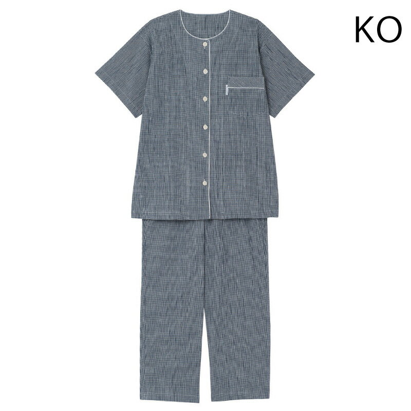 素材 綿100% カラー コン(KO)、ピンク(PI)、サックス(SX) サイズ M:着丈67.0cm 肩幅46.0cm 袖丈20.0cm ズボン脇丈95.0cm ウエスト57.0cm L:着丈67.0cm 肩幅47.4cm 袖丈20.0cm ズボン脇丈95.5cm ウエスト61.0cm ※サイズ詳細の寸法には多少の差異がございます。
