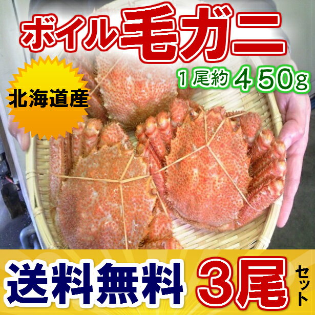 送料無料!! 身入り最高!! 北海道極上ボイル毛がに約450g×3尾セット 勿論身入り保証の最高品です。